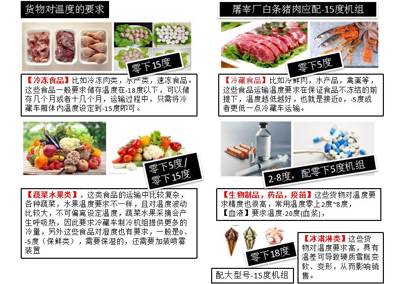 制冷机组:冷藏机组选用知名的国产品牌汉雪或华泰顶置式机组,厢体温度零上5度**零下18度;(可选配进口机组韩国韩亚,美国开利、K牌、冷**等)